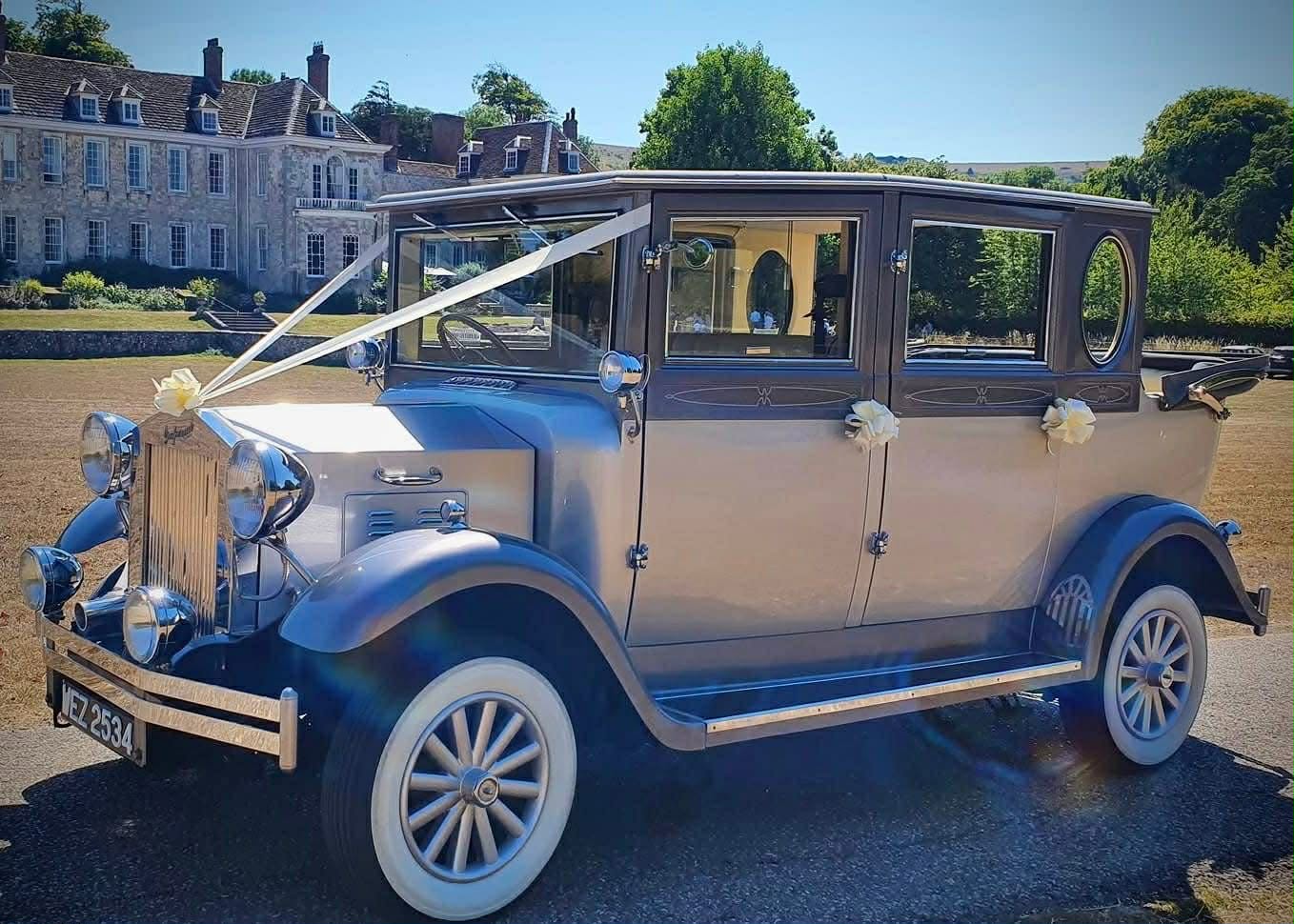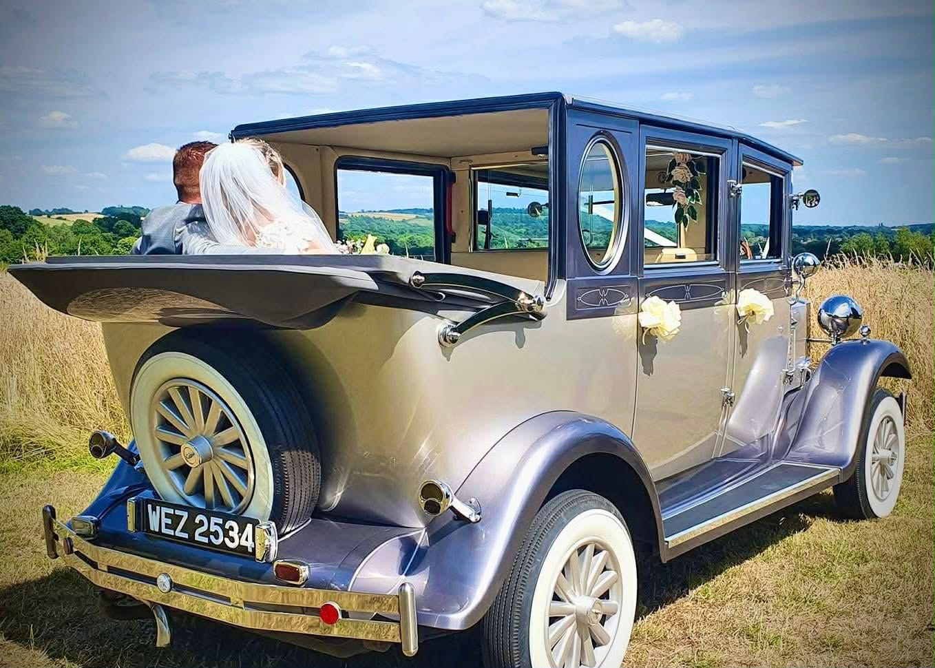 Belinda is our 1930’s style Beauford open top tourer. She is aN ABSOLUTE beauty!… Belinda will give you the grandest of entrances for your wedding day. Finished in old English white over black wings shes the perfect colour match for any wedding theme. Belinda is a full convertible so the sky’s the limits! Think of all the stunning photos in your wedding album. Belinda is available in package deals alongside all our other vehicles.